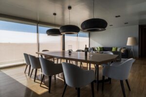 Lámpara de suspensión de luz semi directa. Cuerpo en tejido de fibra natural «simbol» hecho a mano y disco de aluminio. Tensores de acero galvanizado y cable blanco o negro.